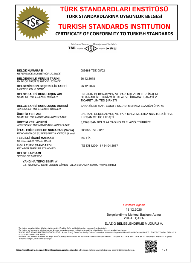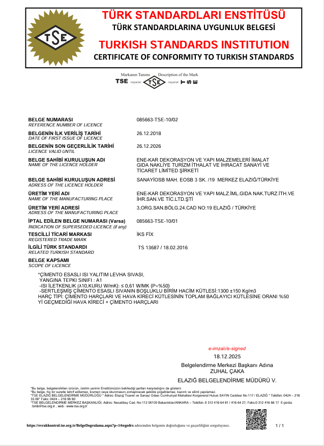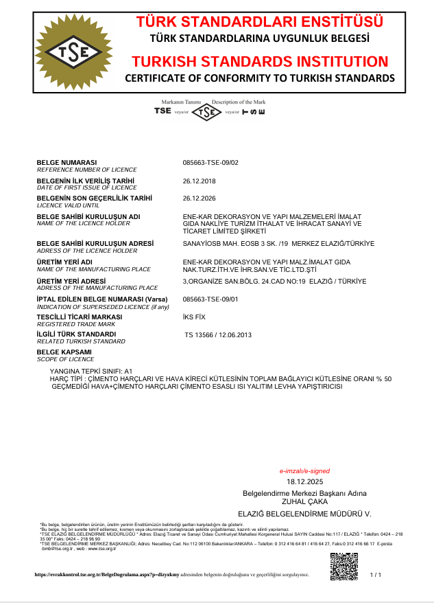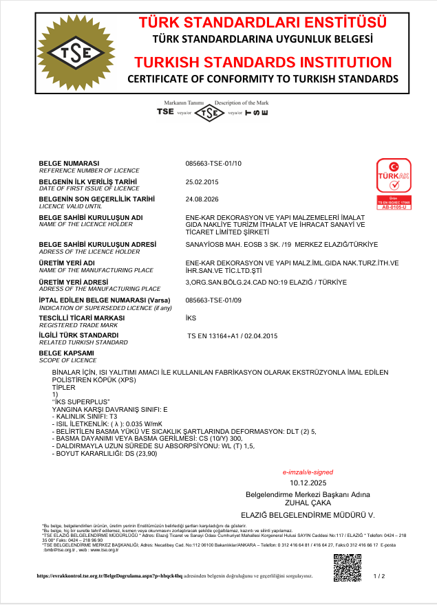 İKS Yalıtım > Ürünler > TSE ve ISO Belgelerimiz